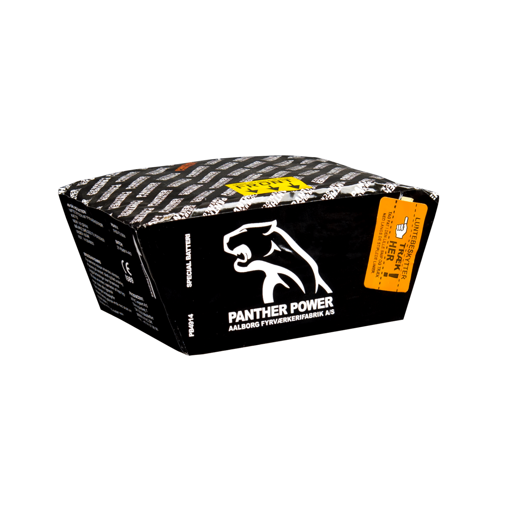 En gammel klassiker fra Panter-serien, produceret af Aalborg Fyrværkerifabrik. Dette lille vinkel-batteri er prisvenligt, men spreder flotte farver på himlen i en smuk vifte. Et lille, enkelt og elsket indslag, der gennem årene har bevist sin charme og pålidelighed.